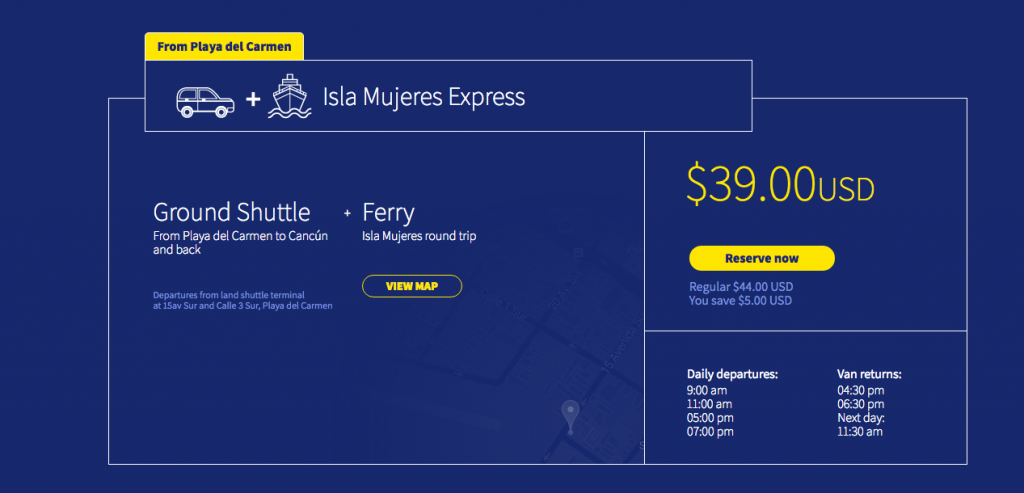 Ultramar is now offering a package, ground transportation from Playa del Carmen to the Isla Mujeres ferry plus ferry ticket. Check it out here
